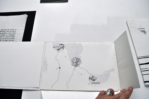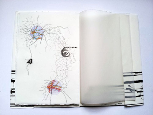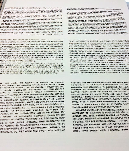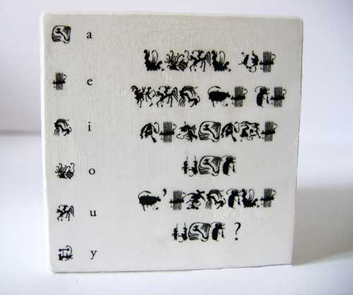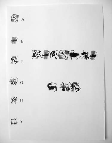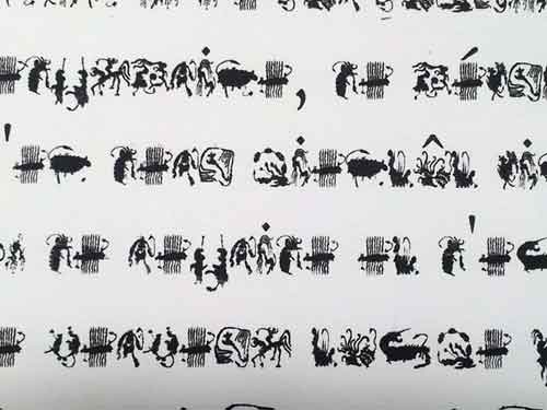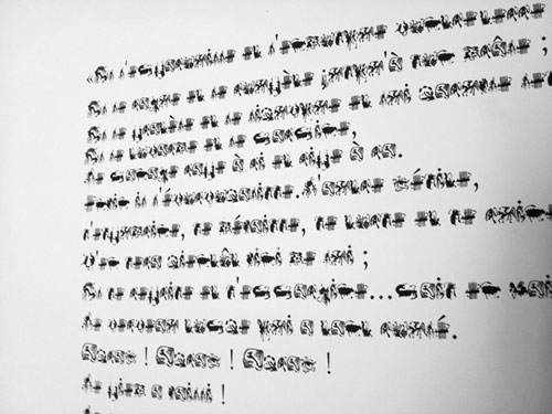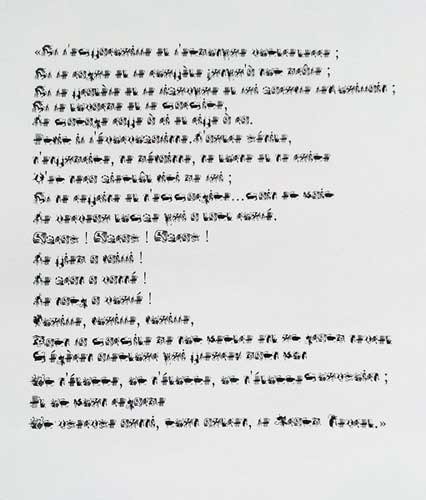 Composé de dessins, il pourrait faire référence à une synesthésie rappelant un “grammelot“ visuel. Ce “langage“ inventé n’est pas dicible, mais l’on peut supposer que les dessins, s’ils étaient interprétés incarnent une forme de communication.
